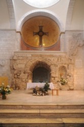 The Way of Sorrow, Second station_Second Station- the Chapel of the Flagellation where tradition holds that Jesus was interrogated by Pilate. The Franciscans begin their weekly procession through the Stations of the Cross here, on Friday afternoons. This modest chapel was built on the site of a Crusader oratory. Inside are glass panel representing the scourging of Jesus (center), Pilate cleansing his hands of the blood of the innocent (left), and the liberation of Barabas (right).
