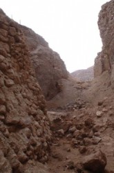 Discovered and excavated by Kathleen Kenyon in her Trench I, the Neolithic tower was built and destroyed in Pre-Pottery Neolithic A, which Kenyon dated to 8000-7000 B.C. The 8m diameter tower stands 8m tall and was connected on the inside of a 4m thick wall.