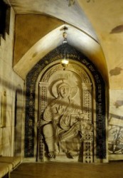 Way of Sorrow- Fourth Station. The meeting between Jesus and his mother is commemored by a small oratory with an exquisite lunette over the antrance, adorned by a bas- relif carved by the Polish artist Zieliensky. |