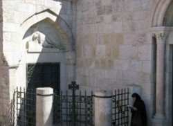 The Way of Sorrow, Sixth Station. Church of St. Veronica. The Armenian Orthodox church here recalls Veronica who wiped the brow of Jesus with her veil. The impressions of His face remained on the veil which has been kept in St. Peter’s since 707. Inside the church is the tomb of St. Veronica.